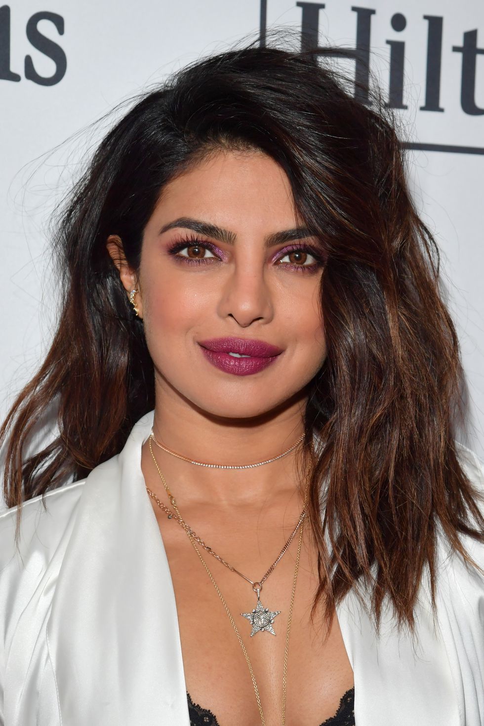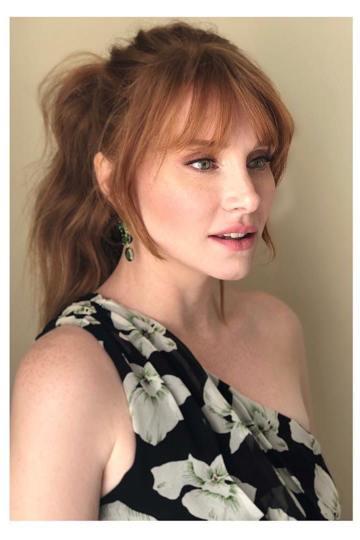 Hair professional Christian Wood had a Brigitte Bardot inspiration he used on Bryce Dallas Howard’s beautiful locks. He added a flirty textured fringe and messy bangs to a high ponytail.
