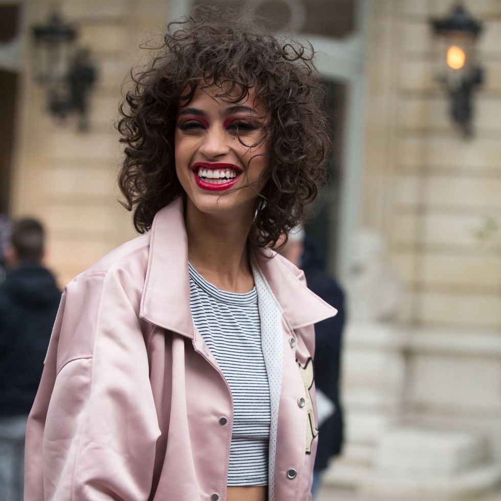 Alanna Arrington spotted at Paris Fashion Week wore her curls natural, freshly washed and with little to no other intervention. If your hair is that curly #6, you can adjust the look while it’s wet to untangle it and add some styling cream to stay like that. The girls with straight hair can air dry and use a curling iron to add some curls in different directions for a natural look.