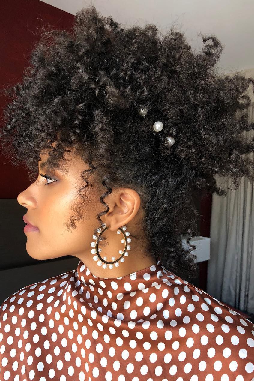 When you have amazing hair and a ton of volume, you can use many ideas and styles to make a statement. Zazie Beetz’s stylist Lacy Redway added some cute #4 bobby pins that match the earrings to add a touch of flair.